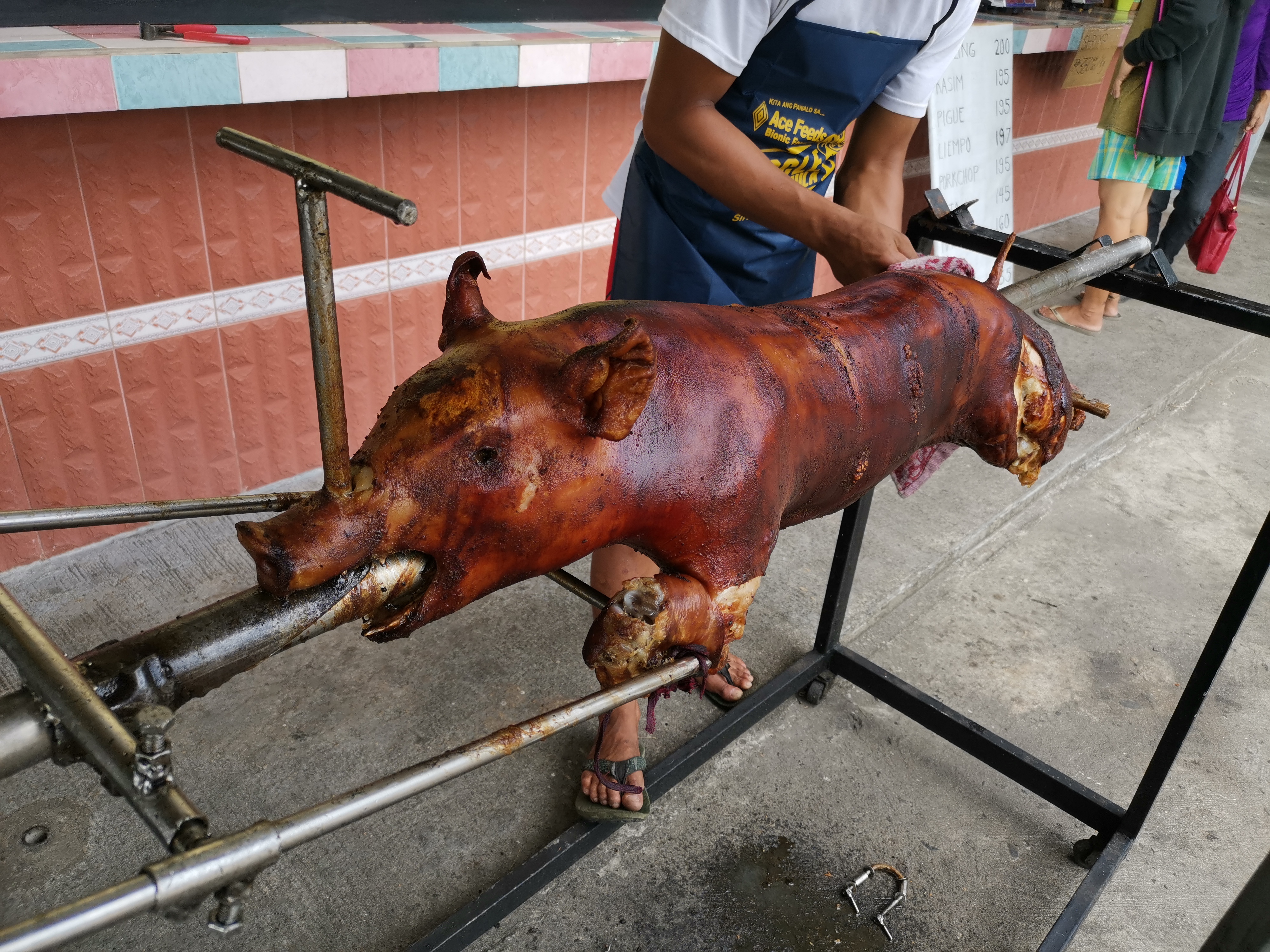 auch haben wir martin zoller`s botolan wildlife farm und seine neu eröffneten meatshop und eatery mit lechon braterei besucht. die schweine oder ferkel kommen von der eigenen schweinezucht, lechon ist eine philippinische spezialität und festmahl, lechon oder deutsch gesagt spanferkel.