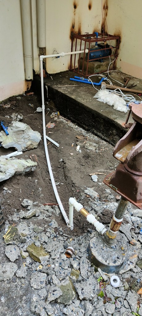 der erste auftrag bestand darin, das wasserproblem zu lösen. dazu wurde eine elektropumpe und ein drucktank installiert, um den wasserdruck in den leitungen zu gewährleisten. das wasser stammt aus einem grundwasserbrunnen, ist jedoch nicht für den menschlichen verzehr geeignet.
