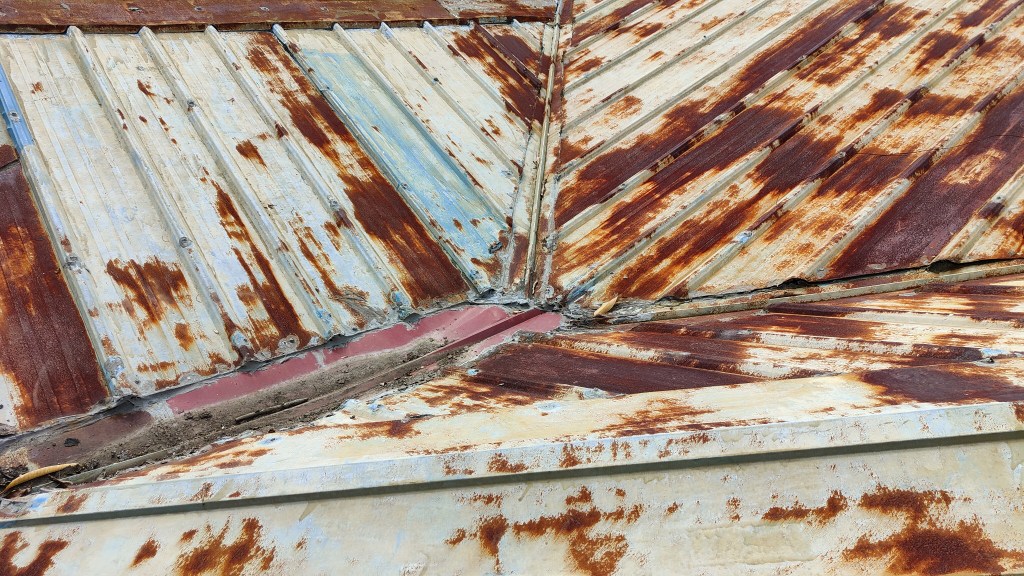 als nächstes wurde das dach repariert, undichte stellen abgedichtet und es wurde weiß gestrichen, um die sonneneinstrahlung abzuschirmen und das blech nicht zu heiß werden zu lassen. es ist erwähnenswert, dass in dieser region keine Isolation vorgenommen wurde.