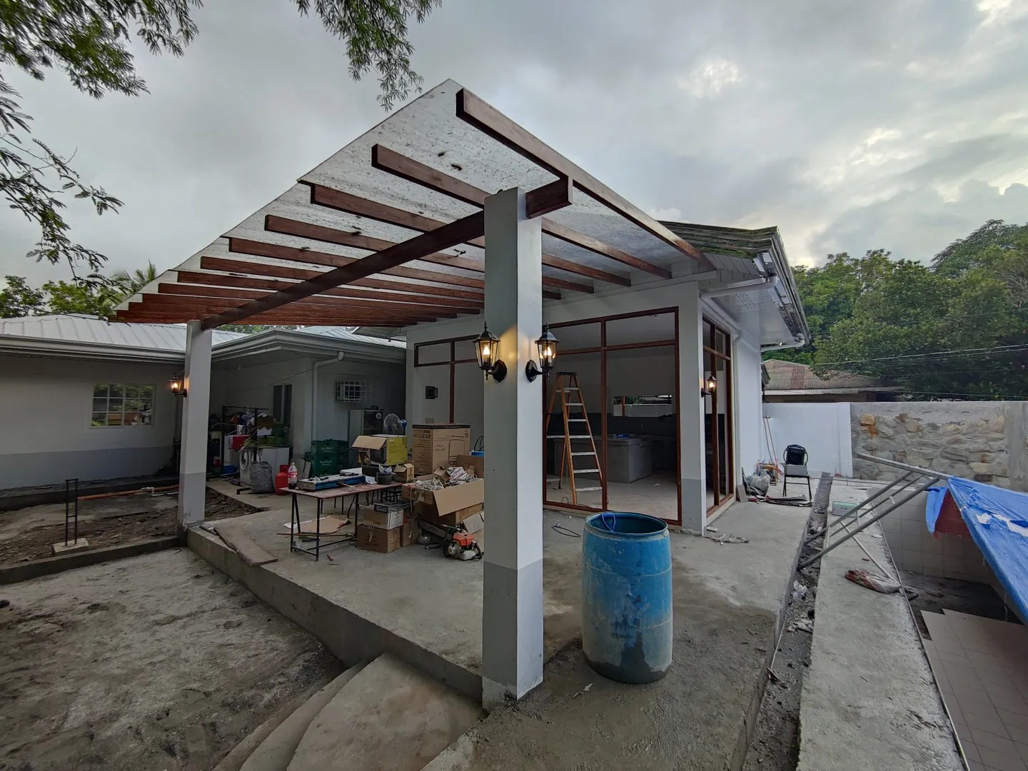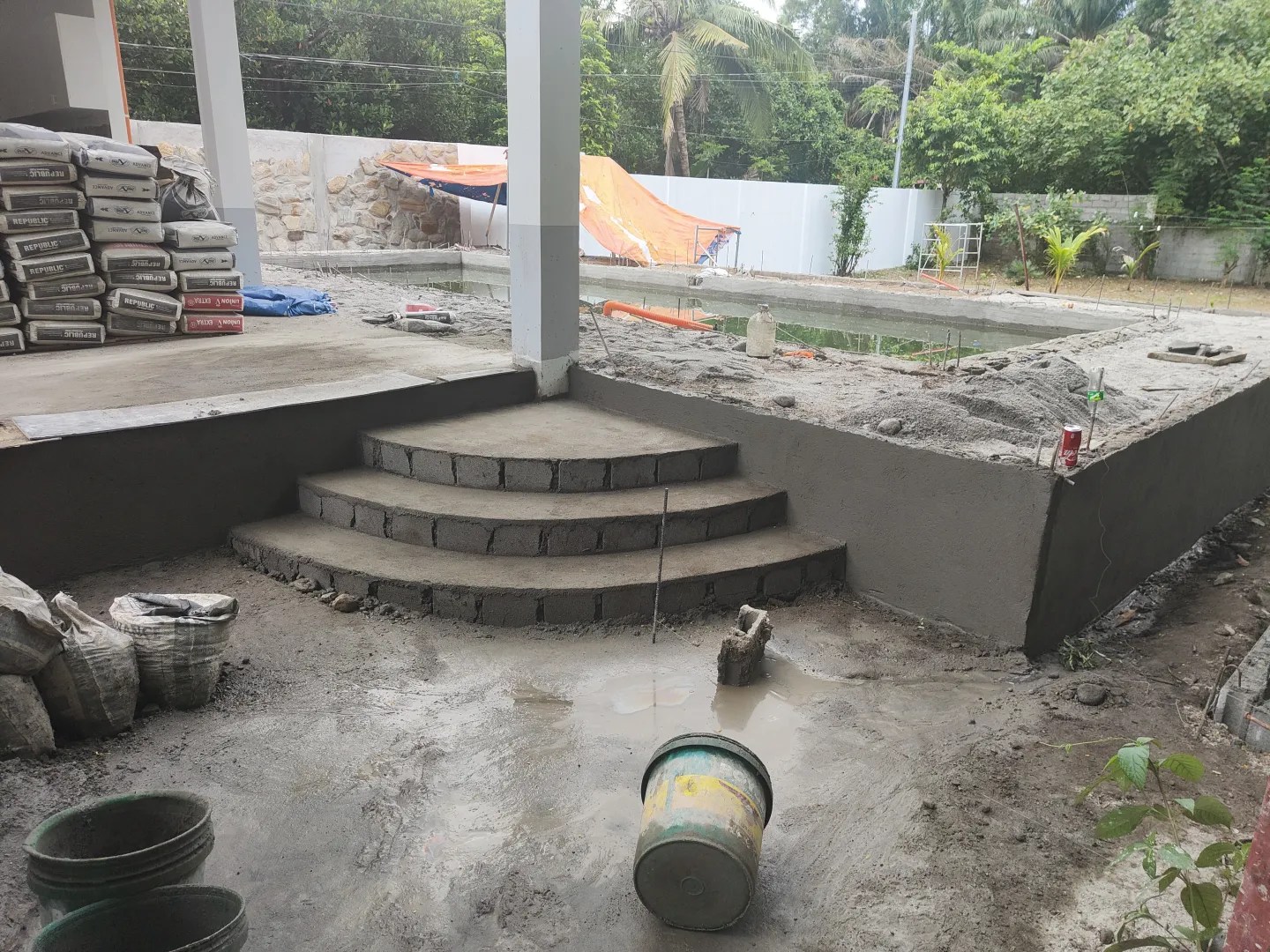 08.08.2023 inzwischen hatten wir leider einige probleme mit unserem auftragsnehmer eldon. der vorfall mit dem „schwarzen pool“ war der berühmte tropfen, der das fass zum überlaufen brachte. grundsätzlich sind wir mit seiner arbeit zufrieden, aber die von ihm vorgeschlagenen verbesserungen an den details passten uns nicht mehr. er weigerte sich, weitere anpassungen vorzunehmen, und erklärte, er werde nicht mehr kommen. immerhin durften wir den rückbehalt des geldes behalten. es ist schade, dass wir nur 10% zurückbehalten haben. beim nächsten mal werden es 20-30% sein.