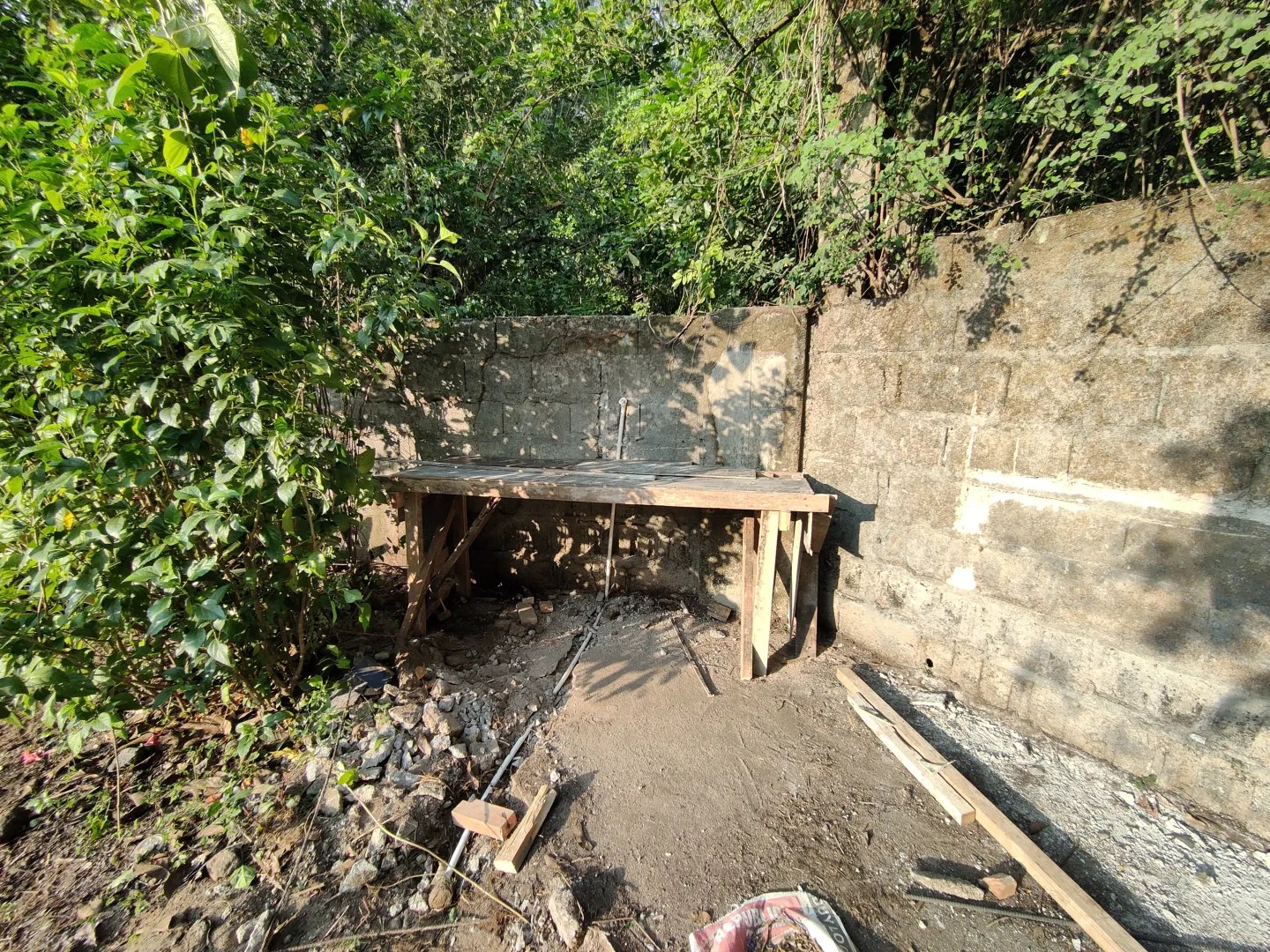 infolge einer anhaltenden regenperiode hatte ich am 28.07.2023 erstmals wasser auf meinem land. das wasser stammte vom bach hinter meinem haus, der nach einer woche anhaltenden regens stark angeschwollen war. das wasser drang durch die löcher in der mauer auf mein land, die eigentlich zum abfließen des wassers vorgesehen waren. nach 4 stunden war es dann auch wieder weg.