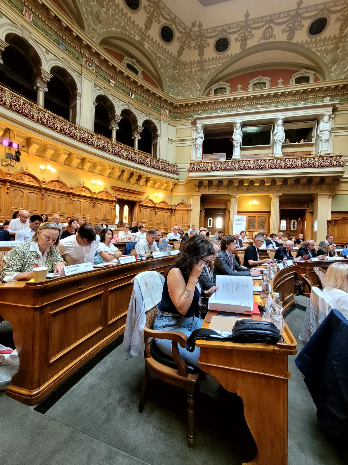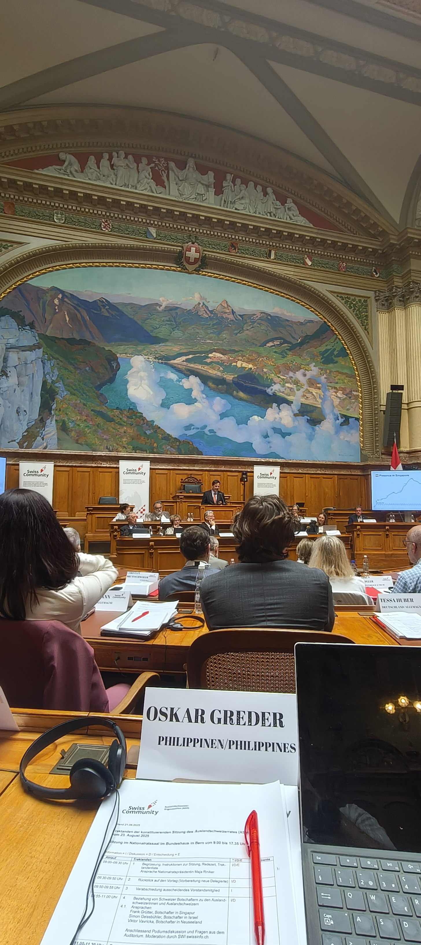 23.08.2025 2. tag swisscommunity-days im bundeshaus bern, diesmal sogar im nationalrats-saal 🙂 🙂 🙂 dieser tag, die 1. sitzung oder konstituierende sitzung bestand vorallem darin, die delegierten des auslansschweizerrates zu bestätigen, die inland-mitglieder des auslandschweizer-rates und den vorstand der aso zu wählen. die meisten diskussionen entstanden, bei der wahl der inland-mitglieder, weil wir delegierten leider keine auswahl hatten. wie auch beim vorstand leider auch nicht und eine wahl ohne auswahl ist leider keine richtige wahl. nichts desto trotz hat die diskussion, licht ins dunkel gebracht und es wurde uns besserung versprochen. 🙂 🙂 🙂 diese beiden tage waren sehr interessant und lehrreich. unterwegs war ich mit den öffentlichen verkehrsmittel die sehr zuverlässig und pünktlich fuhren, typisch schweizerisch halt.